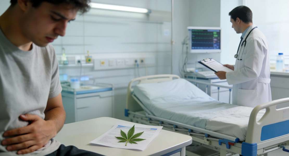 Descrizione foto: Paziente affetto da sindrome da iperemesi da cannabinoidi (CHS, Cannabinoid Hyperemesis Syndrome). - Credit: AI.